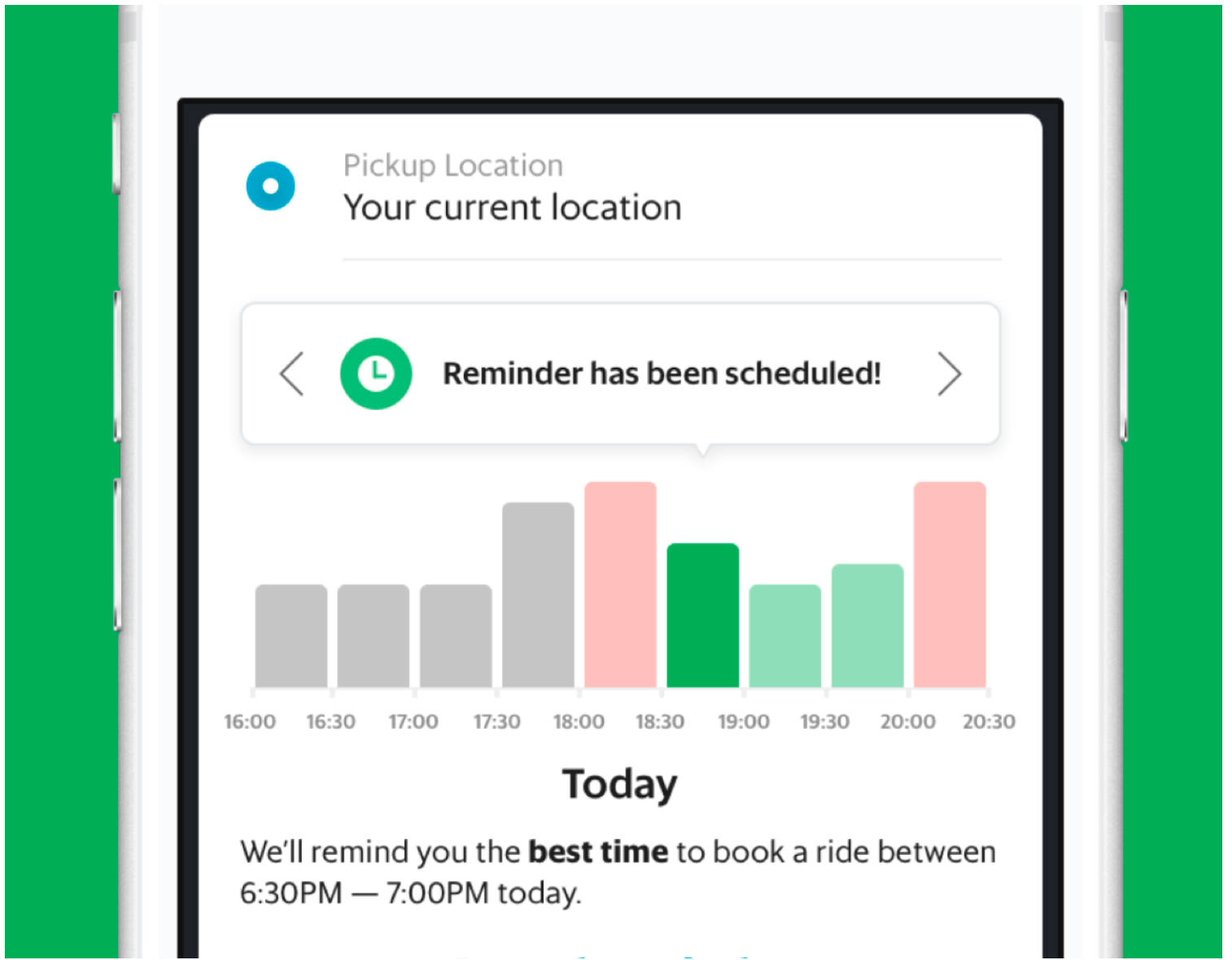 또한 베이징의 호텔에서도 고객들의 편안한 이동을 위해 시간대별 수요에 관련된 정보를 제공했었는데요. 편안한 마음으로 아침을 먹고 인파를 피할 수 있는 가장 좋은 시간으로 6:30 ~ 7:30, 9:00 ~ 10:00 을 투숙객들에게 추천하고 있습니다. 그랩은 이와 같은 사례들에 영감을 받아서 고객들의 과거 데이터를 기반으로 사용자 경험을 항샹시켜주기 위해 프로젝트를 시작했습니다.