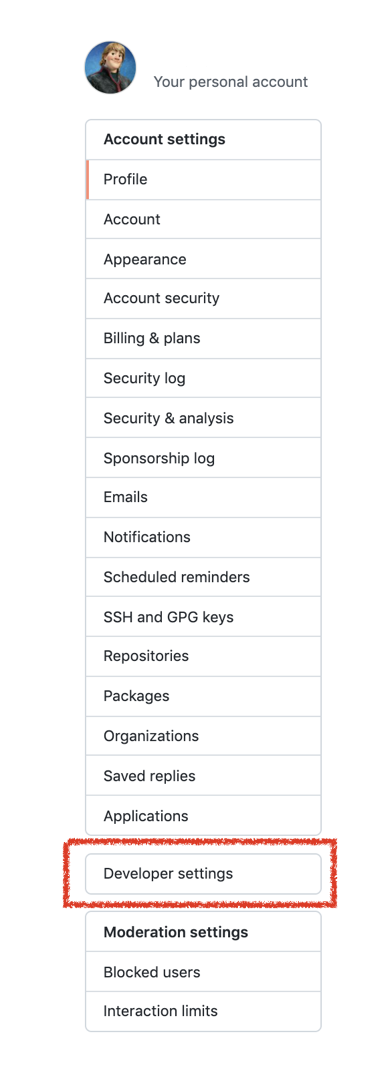 다음으로 좌측 상단에 Developer settings 를 클릭합니다.