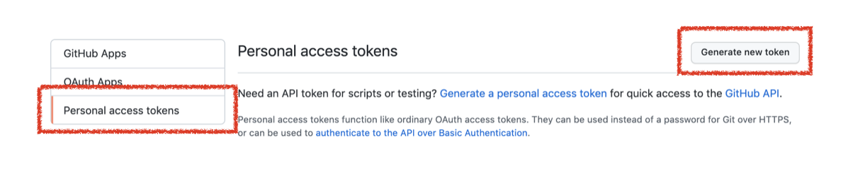 다음으로 Personal access tokens - Generate new token 을 차례로 선택해줍니다.