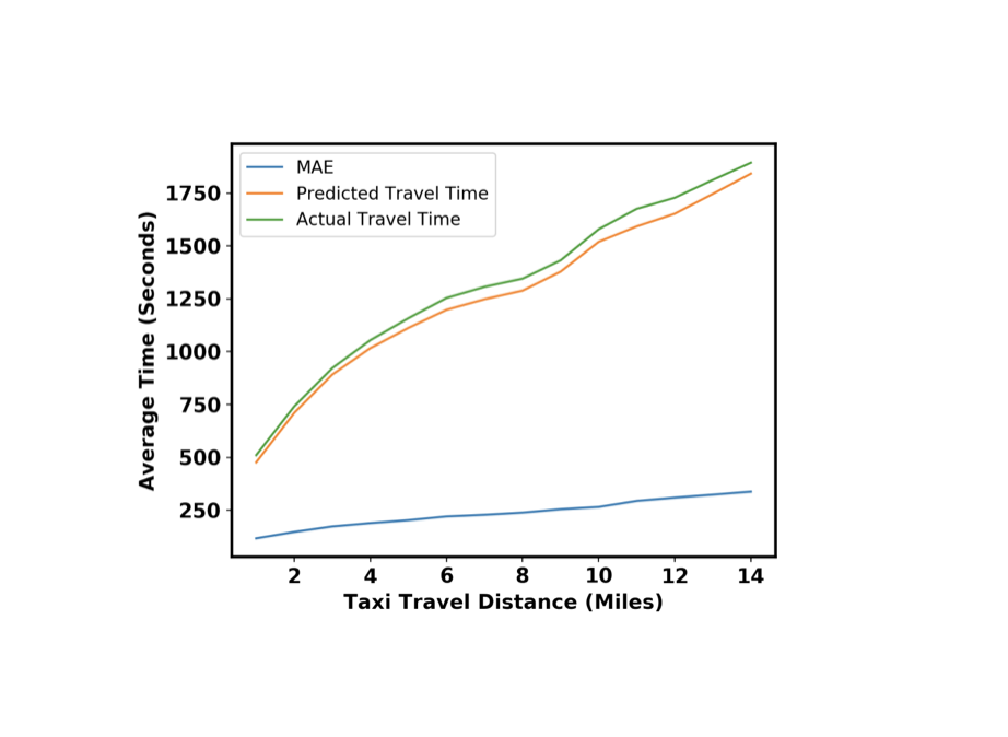 - Actual Travel Time이 늘어날수록, 즉 장거리로 이동할 수록 MAE가 커지는 것을 확인할 수 있다.
